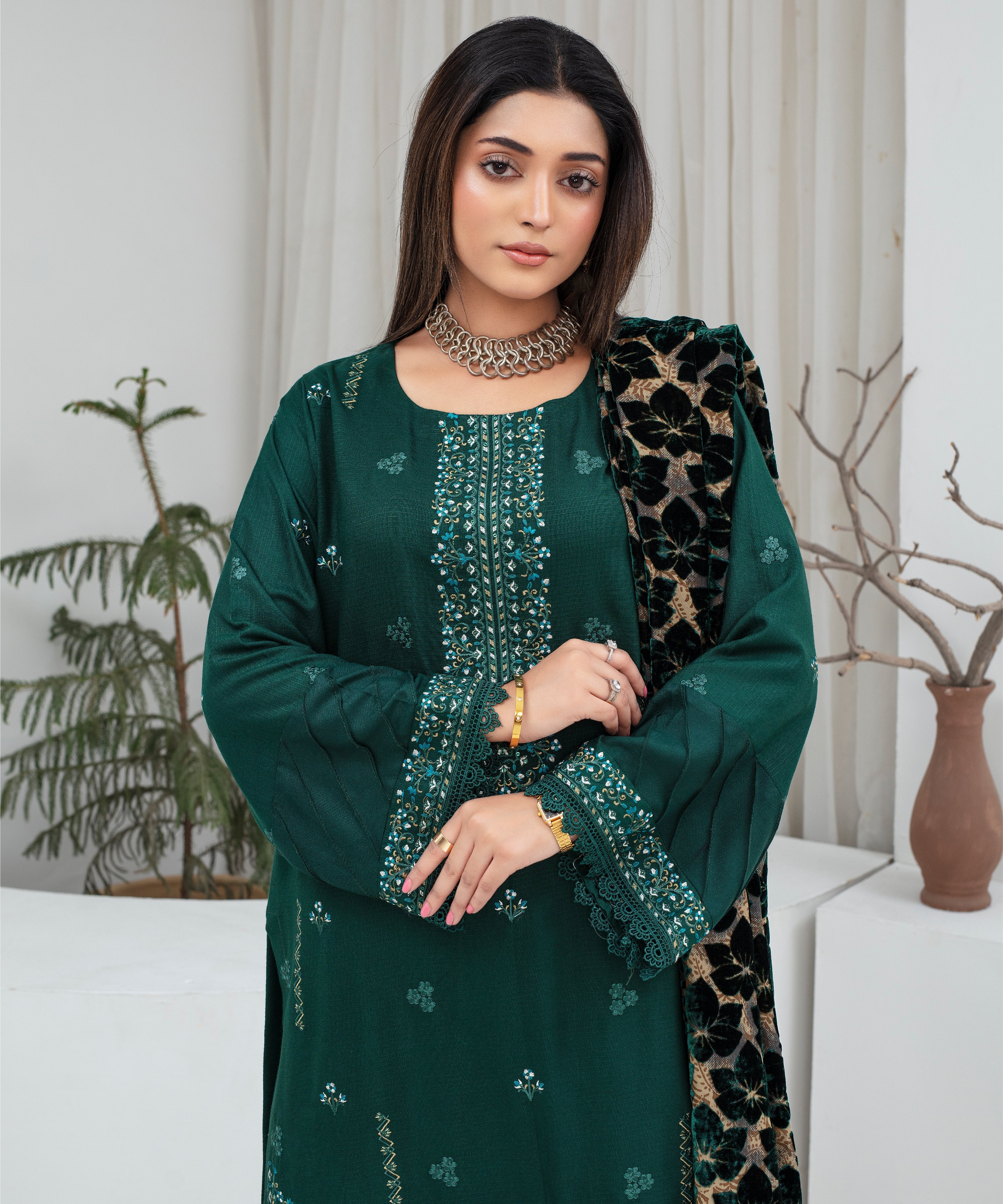 CREATION Dhanak 3PC Chikankari Embroidered Shirt with Velvet Plachi Shawl – ZC2105